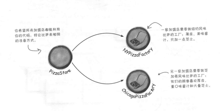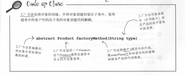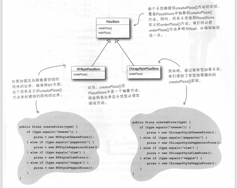 书中有一句很绕的话:子类不是真正"决定"(是你通过选择披萨店决定),但它们确实决定了做哪种披萨。