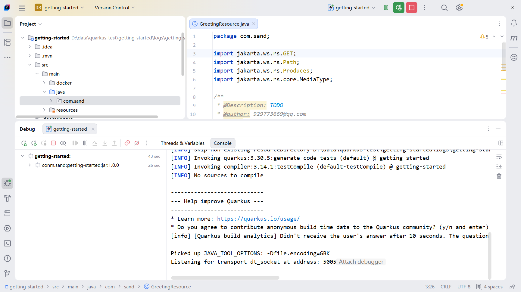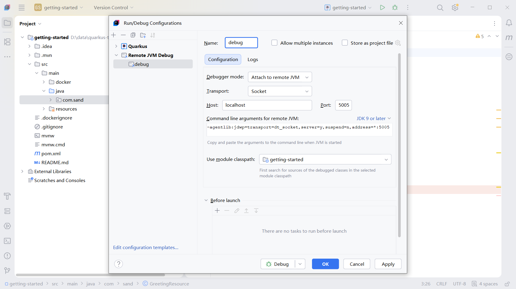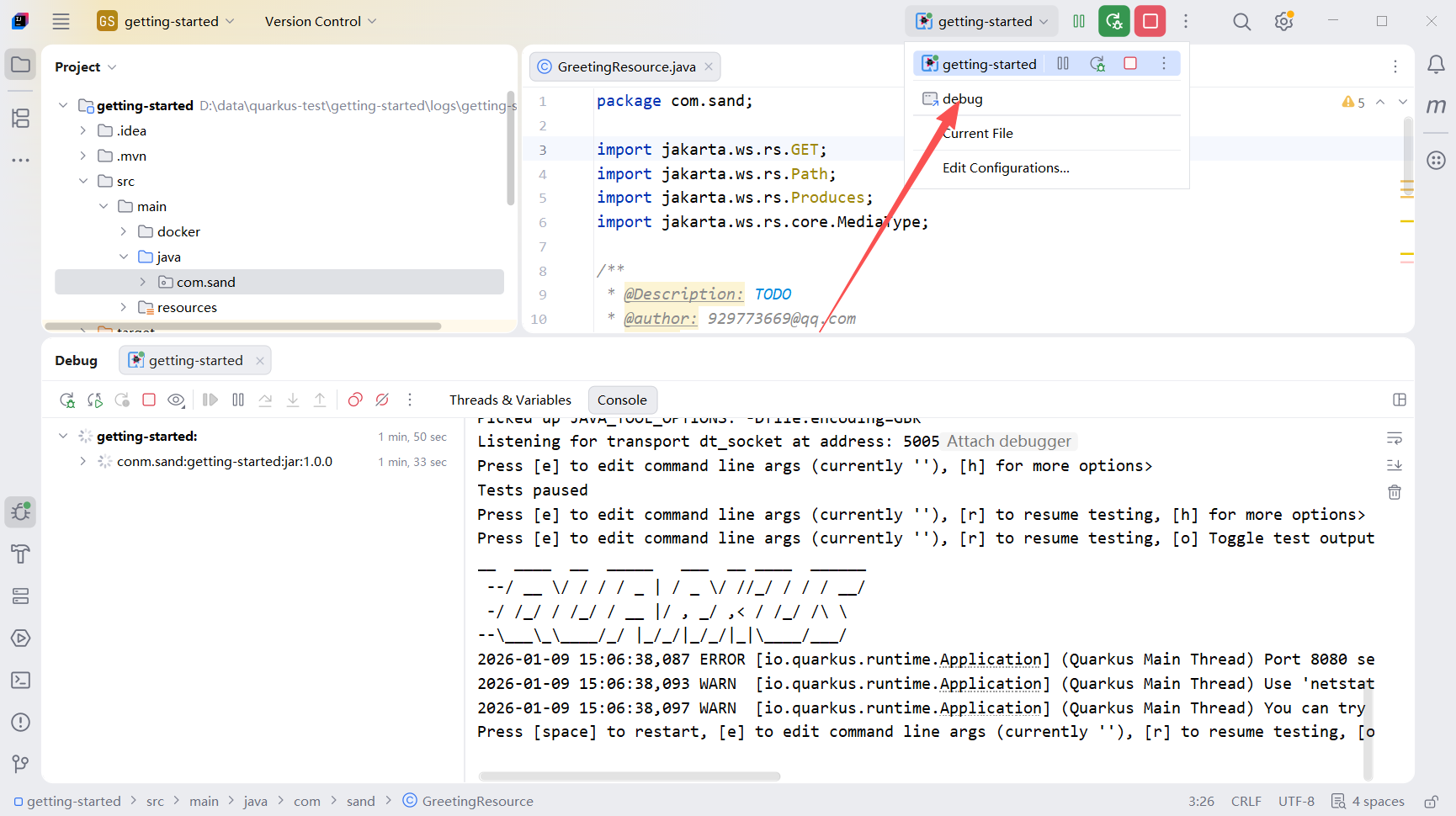 由于Quarkus和我们正常的debug端口不一样,所以我们需要手动配置框架默认的端口。