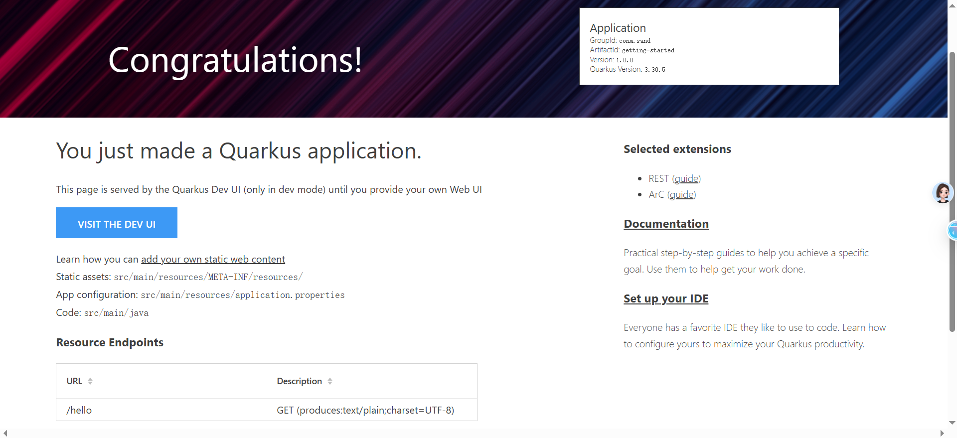 项目启动完成访问localhost:8080就进入框架内置的dev-ui界面。