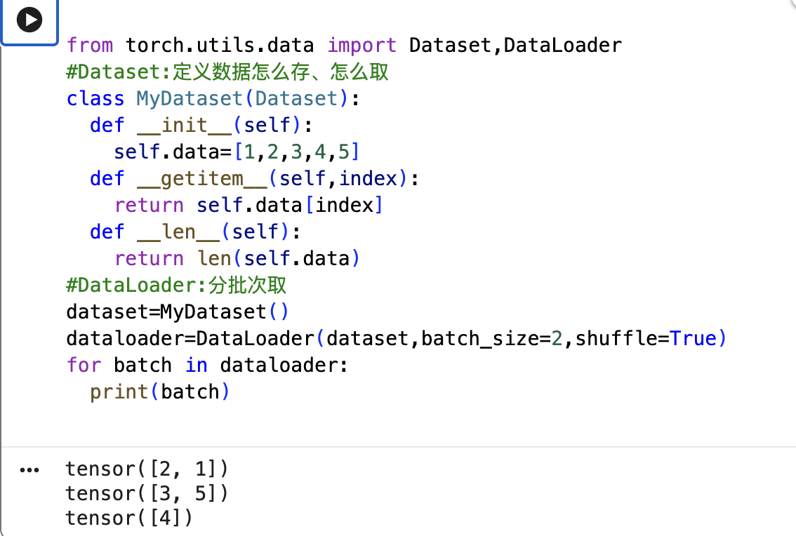 loader = DataLoader(dataset, batch_size=2) # 每次取2个