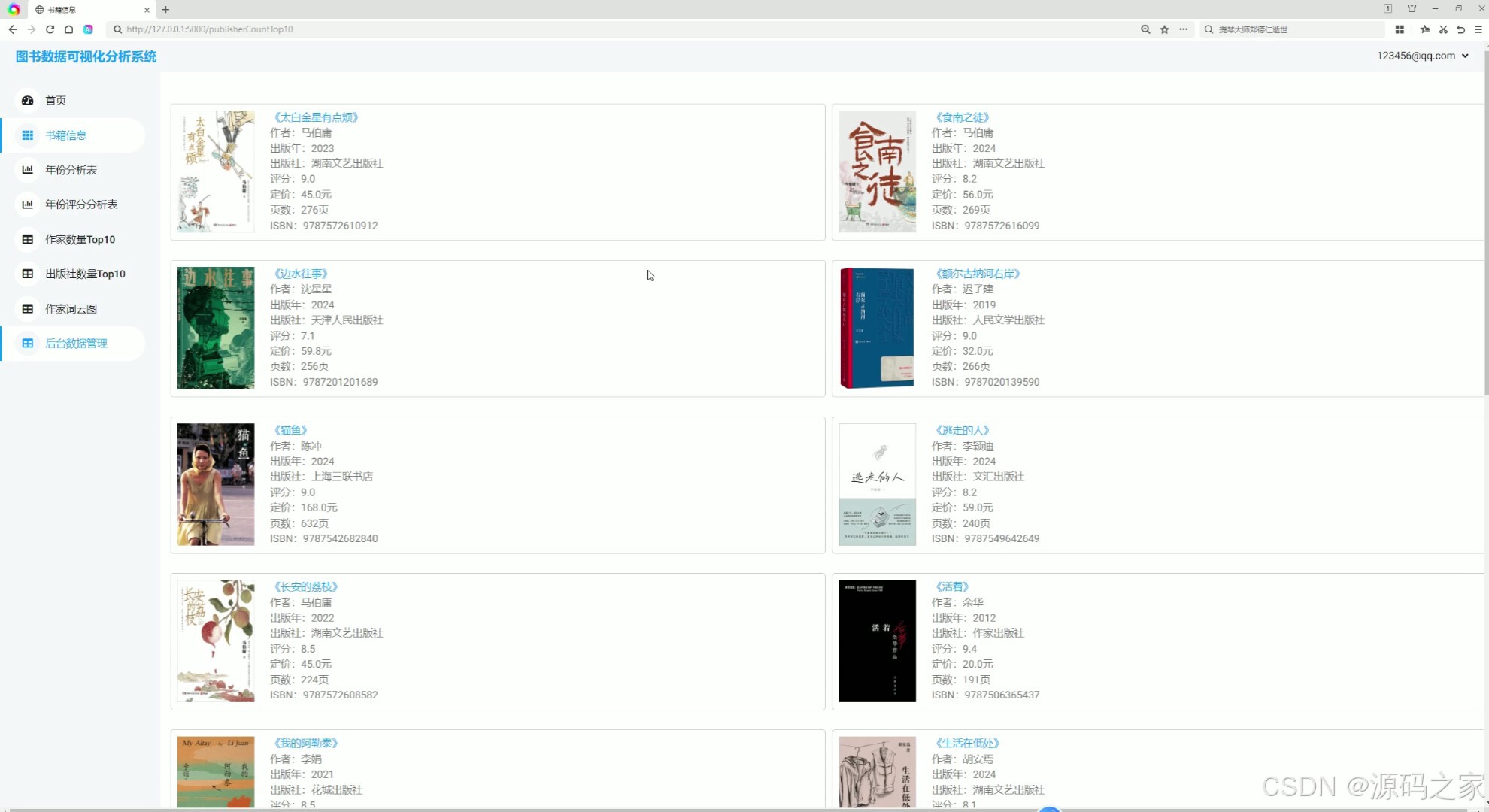 - 数据采集模块:基于requests爬虫技术,定向抓取豆瓣图书核心数据(含书名、作者、出版年份、评分等),支持批量采集与数据更新,确保数据全面性。