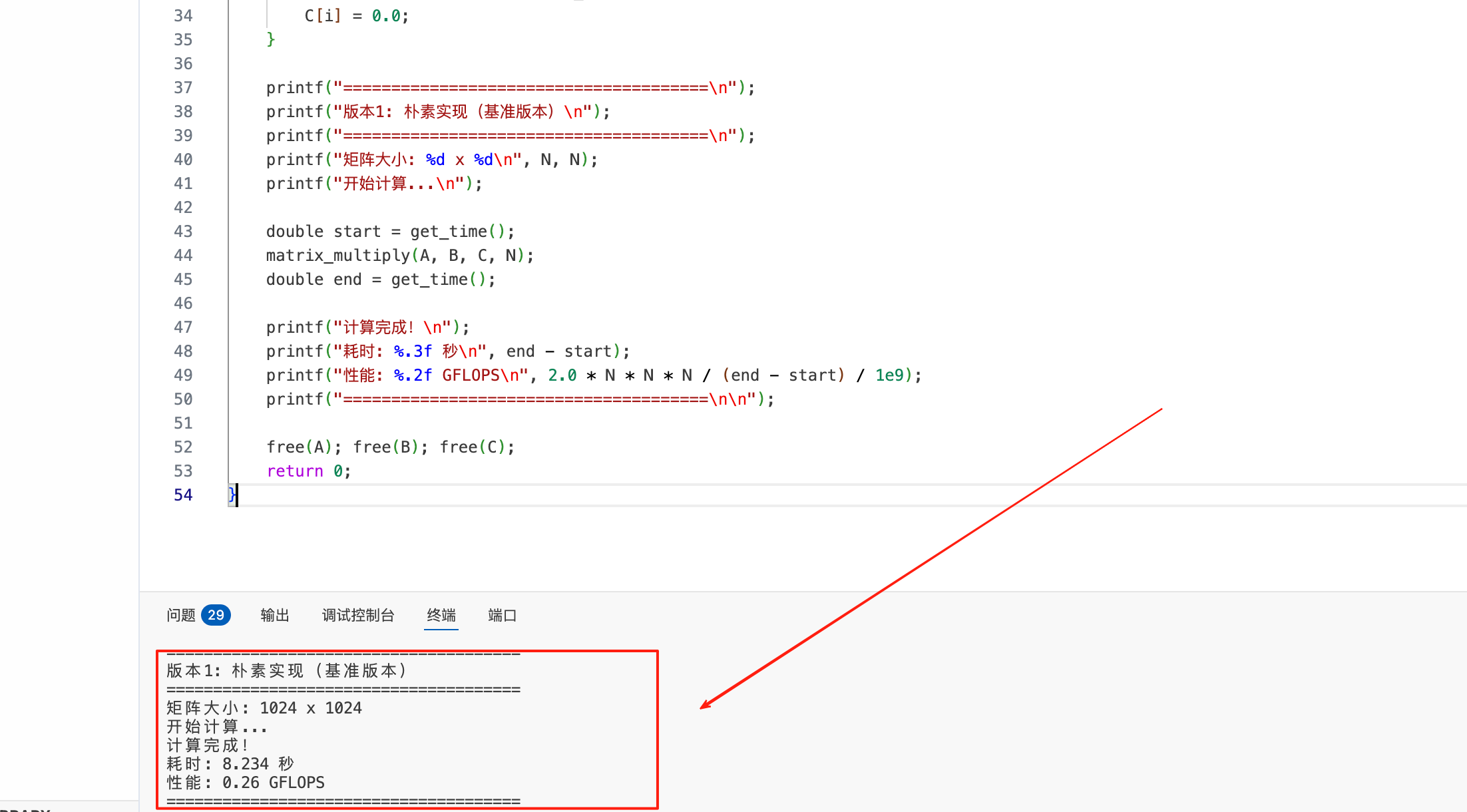 printf("版本1: 朴素实现(基准版本)\n");