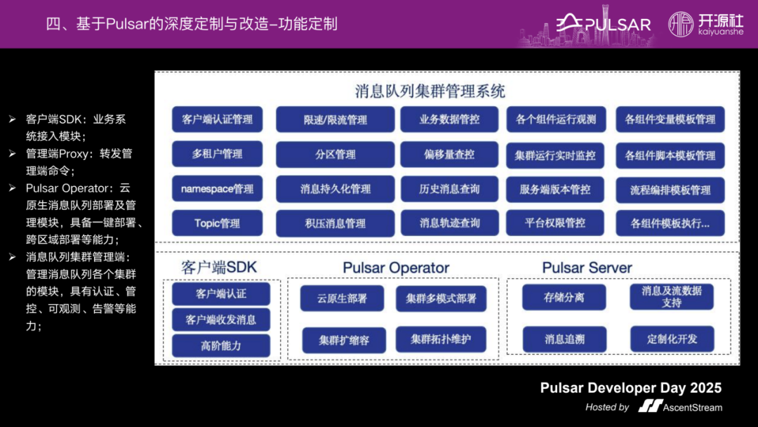 为了更好地满足金融级消息中间件的严苛要求,中原银行基于开源的 Pulsar 进行了深度定制与改造。