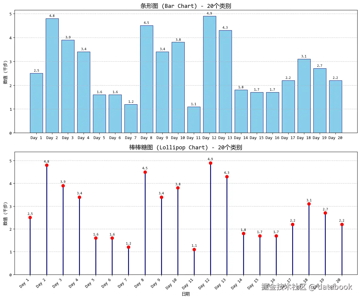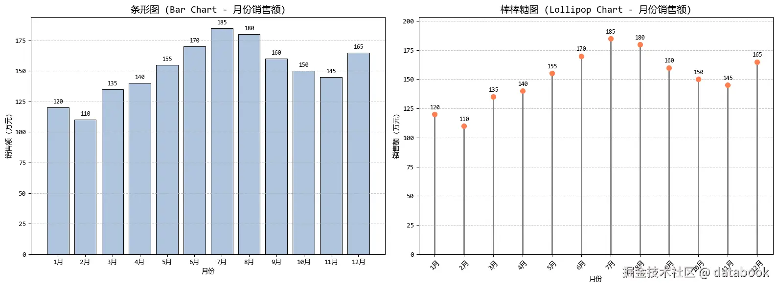 接下来,让我们通过实际的对比示例,直观地感受棒棒糖图与传统条形图的不同表现。