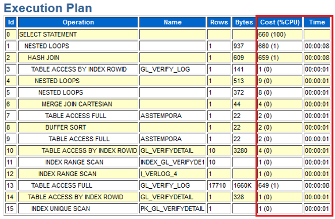 • SQL 中涉及的最大表 GL_VERIFY_LOG 只有 17,710 行