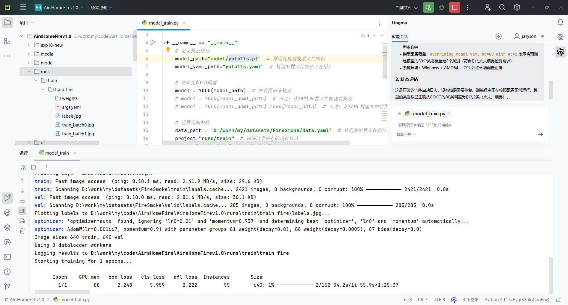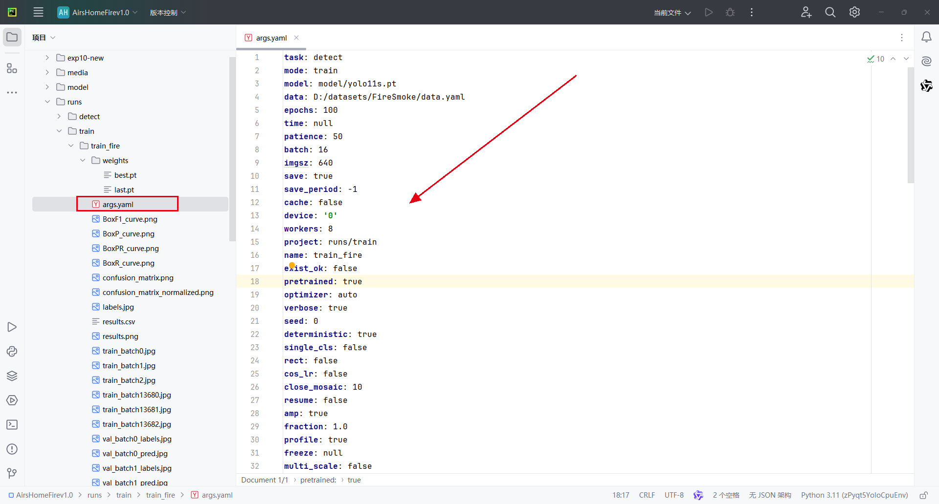 Results saved to D:\code\AirsHomeFirev\AirsHomeFirev1.0\runs\train\train_fire\weights