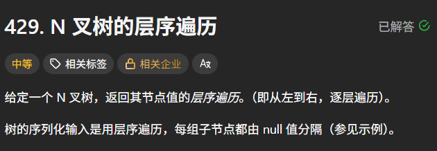 题目链接:力扣 429. N 叉树的层序遍历