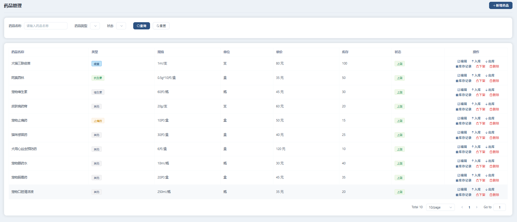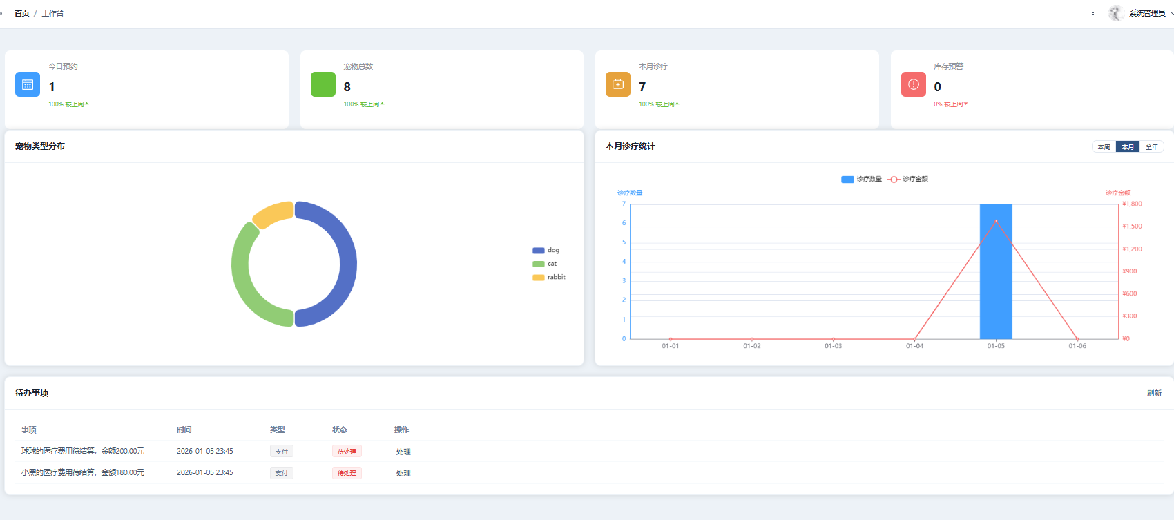 经过测试,系统运行稳定,功能完善,为宠物医院提供了一套完整的信息化管理解决方案。