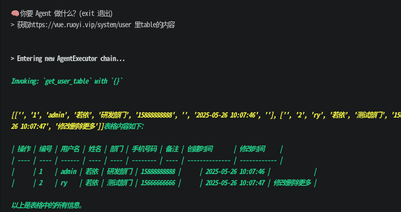 本文将详细介绍一个基于LangChain和Qwen模型的智能体项目,该项目能够自动化操作以RuoYi为实例。通过Playwright浏览器自动化技术,结合自定义工具,实现用户管理、表格导出、页面导航等功能的智能化操作。