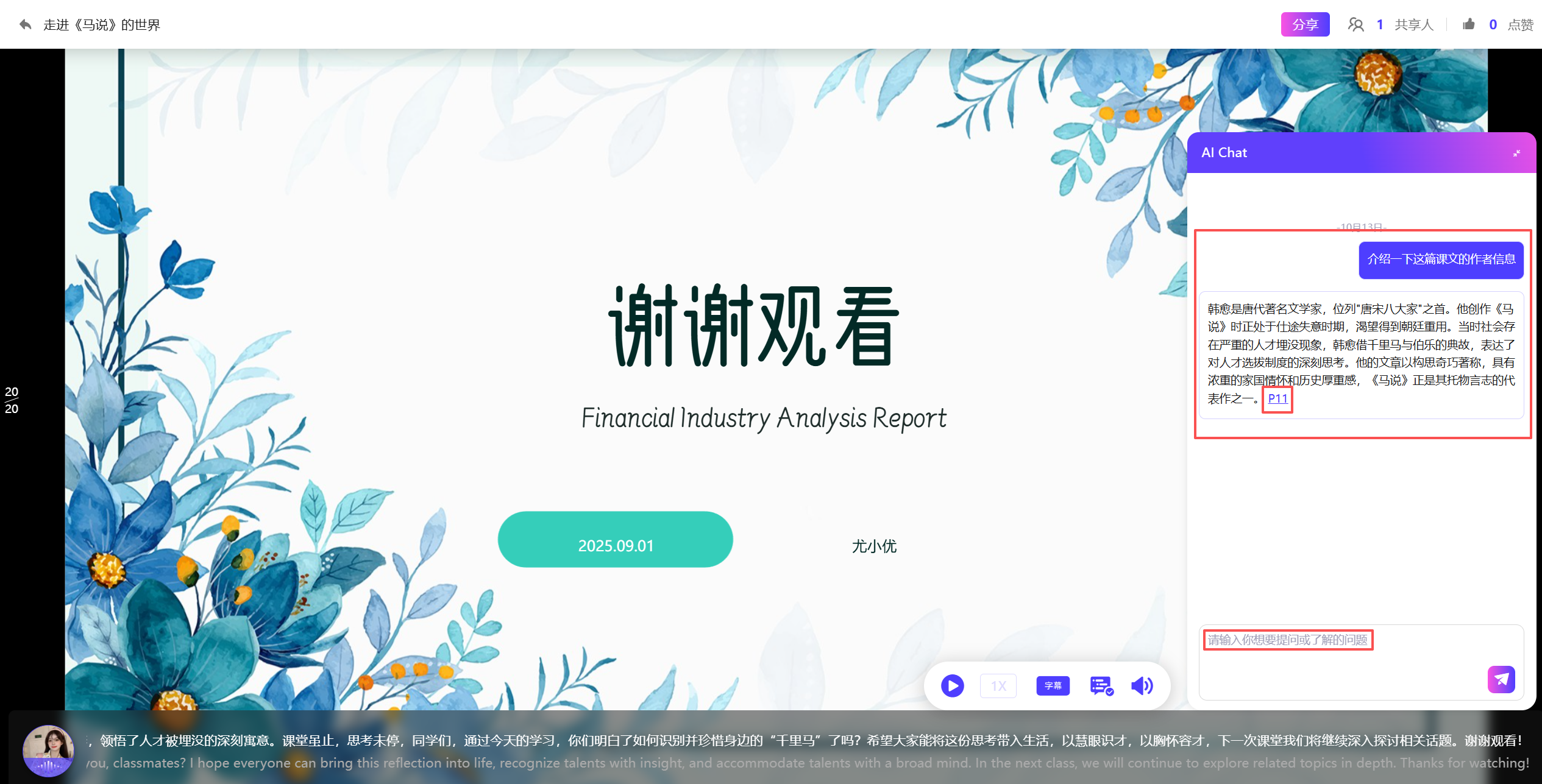 与普通问答功能不同,ChatPPT的智能问答具有内容溯源能力。当观众提出"请详细解释第三页的数据趋势"或"这个方案如何应对潜在风险"等问题时,系统不仅能生成准确回答,还会自动定位到相关幻灯片页面,直观展示信息出处。这一功能在学术答辩、投资路演等严谨场景中尤为宝贵,确保了问答环节的准确性与专业性。
