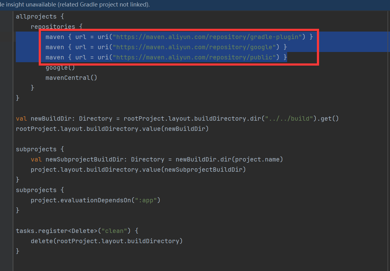 maven { url = uri("https://maven.aliyun.com/repository/public") }