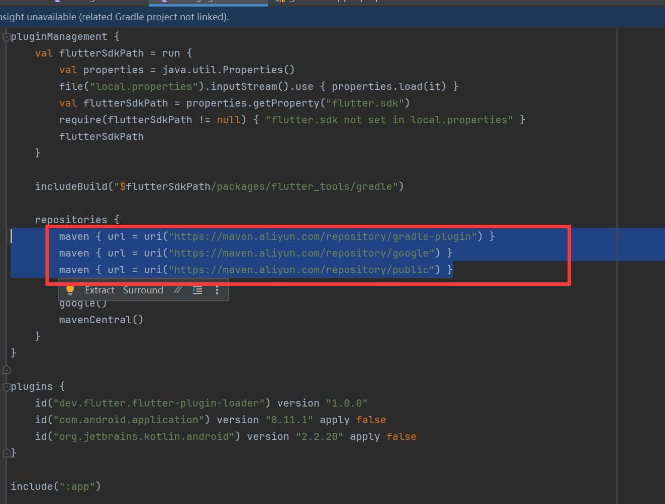 maven { url = uri("https://maven.aliyun.com/repository/gradle-plugin") }