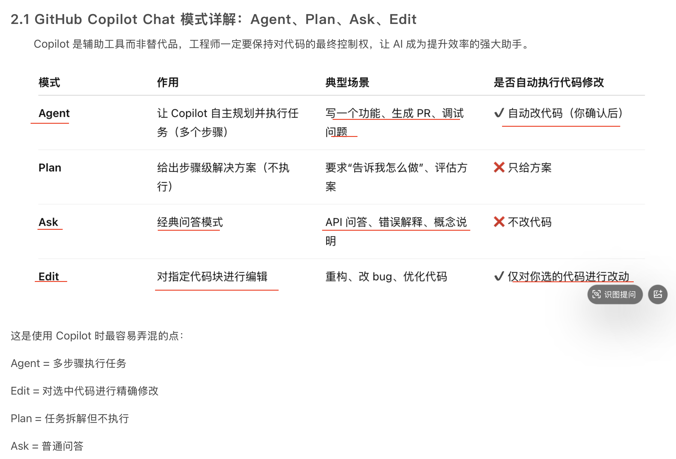 今天开始实践使用 Github Copilot, 之前使用过 Chat 模式的各种 LLM,VSCode 中智谱的插件 CodeGeex, VSCode 中 MCP 的生成插件 Cline。近期还打算用起来 Cursor。