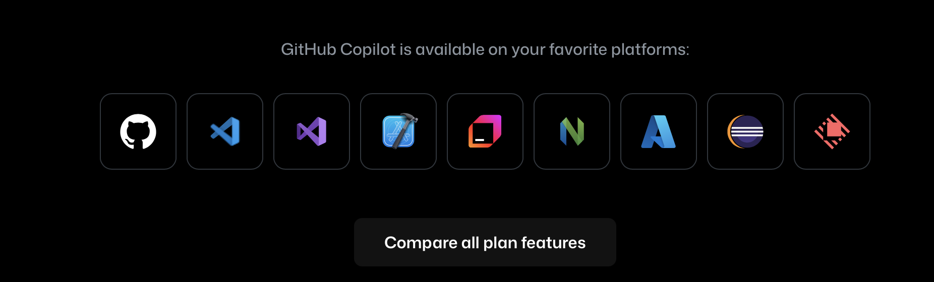 GitHub Copilot 官网:https://github.com/features/copilot 。GitHub Copilot主要以插件形式存在于各个主流开发平台里面。