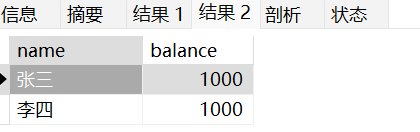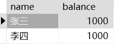 insert into bank_account(name,account) values ('张三',1000),('李四',1000);