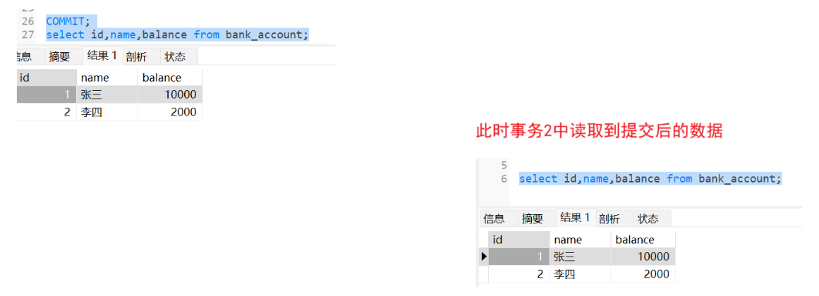 COMMIT提交事务,执行事务提交事务之后,这个事务才会生效
