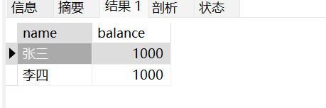 insert into bank_account(name,balance) values ('张三',1000),('李四',1000);