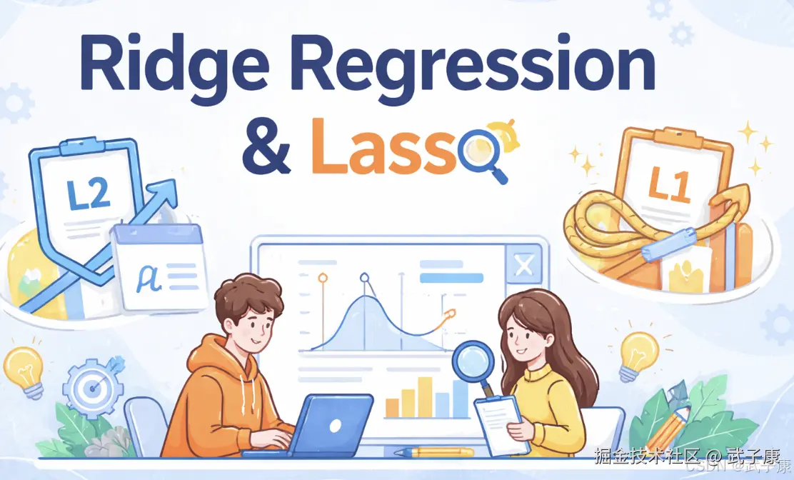 岭回归(Ridge Regression)和Lasso(Least Absolute Shrinkage and Selection Operator)是两种经典的线性回归正则化方法,专门用于解决机器学习中的过拟合问题和多重共线性问题。这两种方法的核心思想都是在普通最小二乘法(OLS)的基础上,通过引入不同的正则化项来约束模型参数。