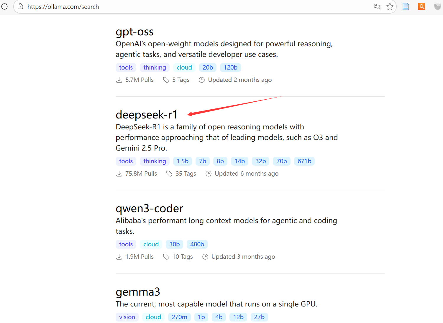 4、或者在ollama官网获取模型: