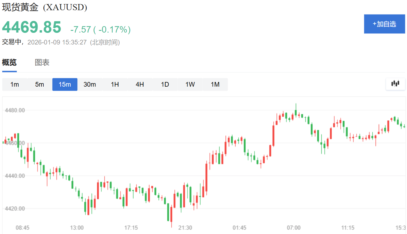 现货黄金价格在高位保持韧性,最新报4469.85美元/盎司,日内微跌0.17%,整体处于强势盘整格局。