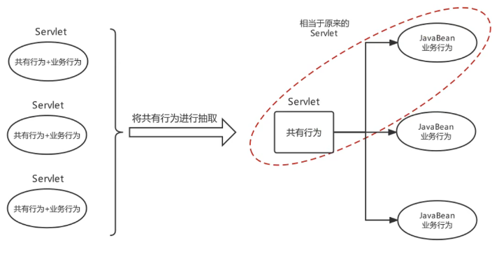 负责共有行为的Servlet称之为前端控制器,负责业务行为的JavaBean称之为控制器Controller