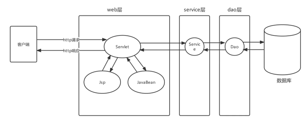 Java程序员在开发一般都是MVC+三层架构,MVC是web开发模式,传统的Javaweb技术栈实现的MVC如下