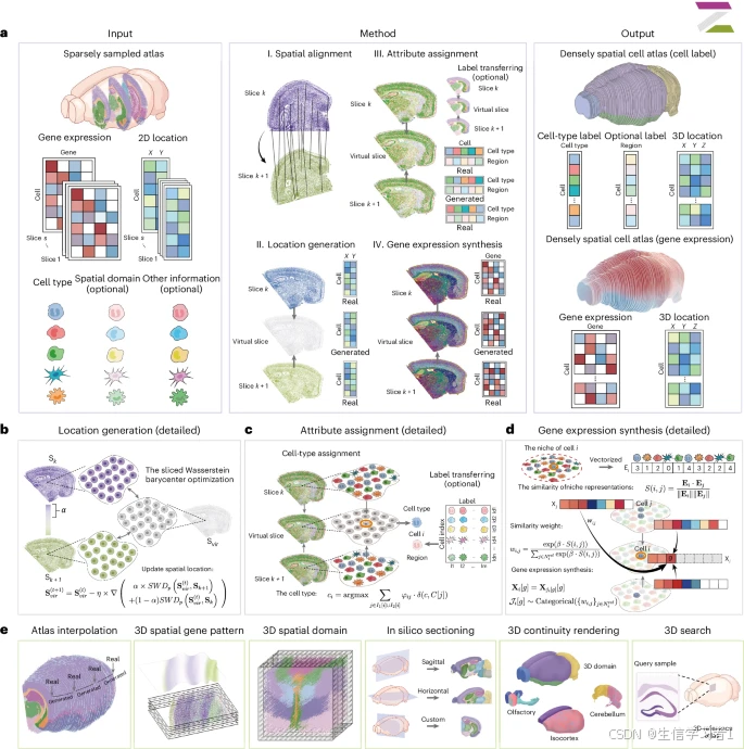 对于弥合二维和三维单细胞转录组(ST)之间的差距而言,理想的解决方案应满足以下关键要求:(1)生成涵盖器官大部分区域的全面三维器官图谱,(2)不受特定 ST 技术的基因覆盖限制的影响,(3)具备单细胞分辨率的能力,(4)在表面和体积上准确呈现三维基因表达模式,(5)识别三维组织区域和感兴趣的空间域,以及(6)能够进行计算机模拟切片以生成任何所需角度或厚度的额外二维切片。