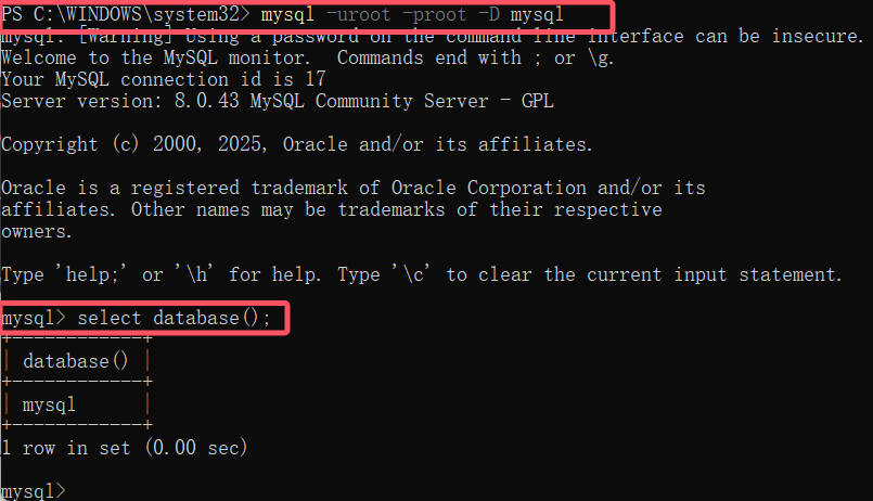 mysql -uroot -proot -D mysql