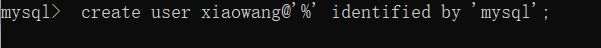 create user xiaowang@'%' identified by 'mysql';