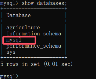 mysql> use mysql #进入/切换数据库mysql