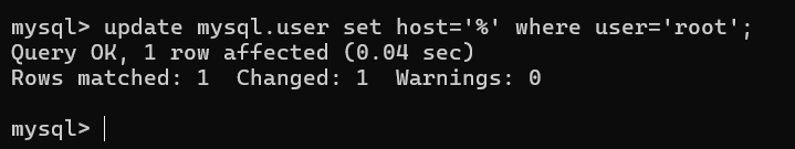 update mysql.user set host='%' where user='root';