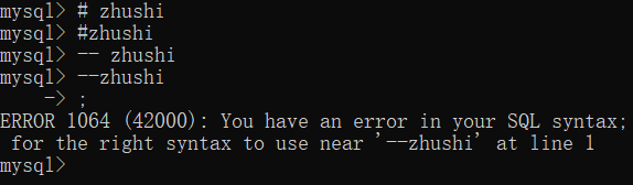 --和"#"为单行注释 注:--与注释之间需留有一格否则不生效