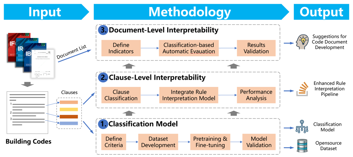 提出文档级量化指标,实现单条款和建筑规范整体可解释性评估,应用于150余部中国建筑规范。