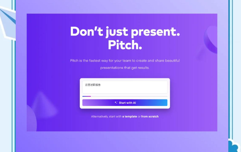 Pitch是一款主打协作功能的ai生成ppt工具,同时在设计感上表现出色。它的核心定位是"团队协作演示平台",但对新手个人用户也很友好。我曾和同学组队用它制作小组作业PPT,最深的感受就是协作功能非常便捷,多人可以同时在线编辑,每个人的光标会显示不同颜色和姓名标识,还能直接在页面上评论反馈,避免了反复传输文件的麻烦。它生成的PPT设计风格偏简约高级,自带一种专业感,适合用于小组汇报、商业提案等场景。