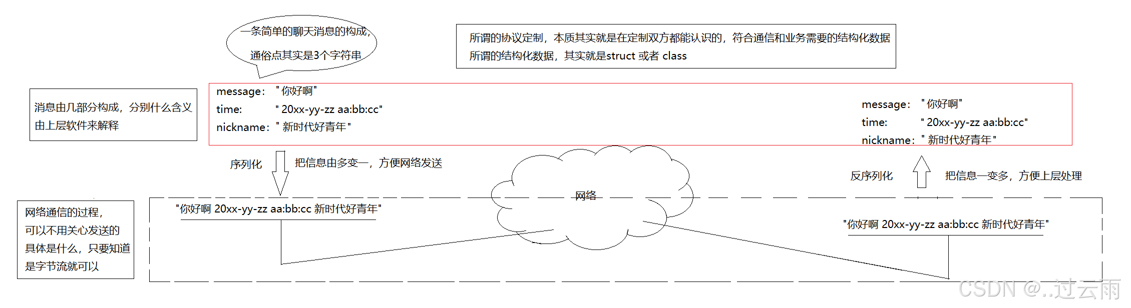 cpp// 对应你图里的message/time/nickname struct ChatMsg { string message; // "你好啊" string time; // "20xx-yy-zz aa:bb:cc" string nickname; // "新时代好青年" };序列化就是把这个