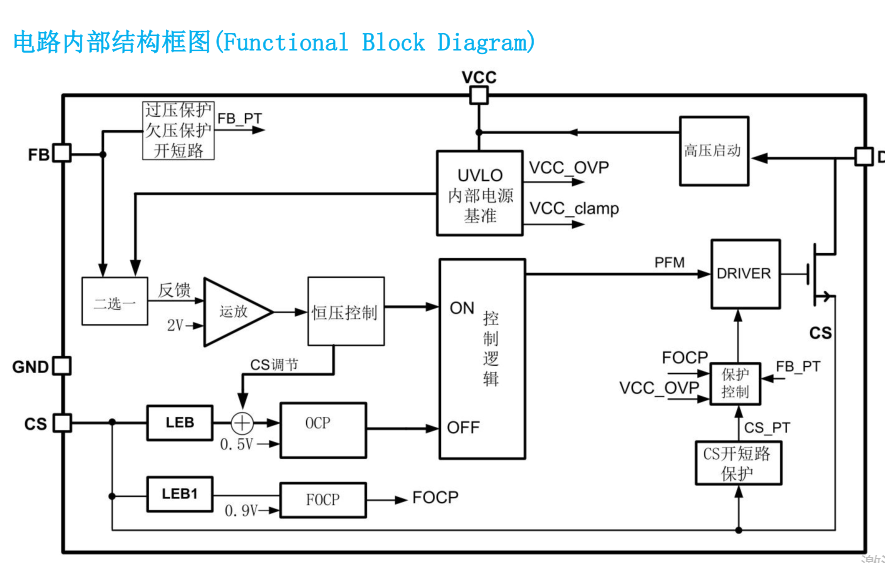 3满载时进入CCM,由于最小消磁(关断)时间 16uS,CCM 取电感电流自峰值下降70%,也就是L=(Vo+1)*16us/(1.4*lo),比如Vo=12V,10=0.5A,那么L=(12+1)*16us/0.7A=297uH;电感饱和电流必须>2.4*10,比如输出0.5A,电感饱和电流必须>1.2A,选择合适磁芯保证安全;4以上计算是按照比较紧的规格计算的,如果过流点需要留有余量,在完成以上计算后,CS电阻可酌情缩小 10%;5如果 FB是通过 VCC 分压电阻取得反馈,那么 VCC 分压电阻总值应取>=150K比较合理;6.