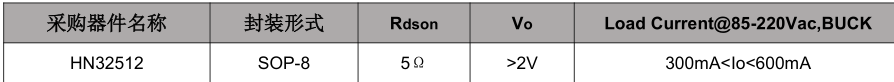 HN32512 是一款非隔离300MA~600MA降压控制芯片,内置 500V MOS;采用PWM+PFM 相结合的控制方式,实现效率和待机性能的优化,降低了噪声。