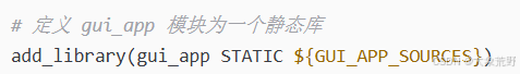 add_library():CMake 中用于创建库目标的命令,这里用于构建 gui_app 模块库;