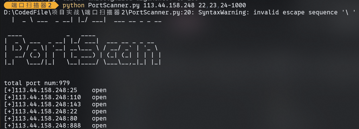 注:端口连续的话必须,先有一个正常扫描的,这样 22,23-999,懒得改了