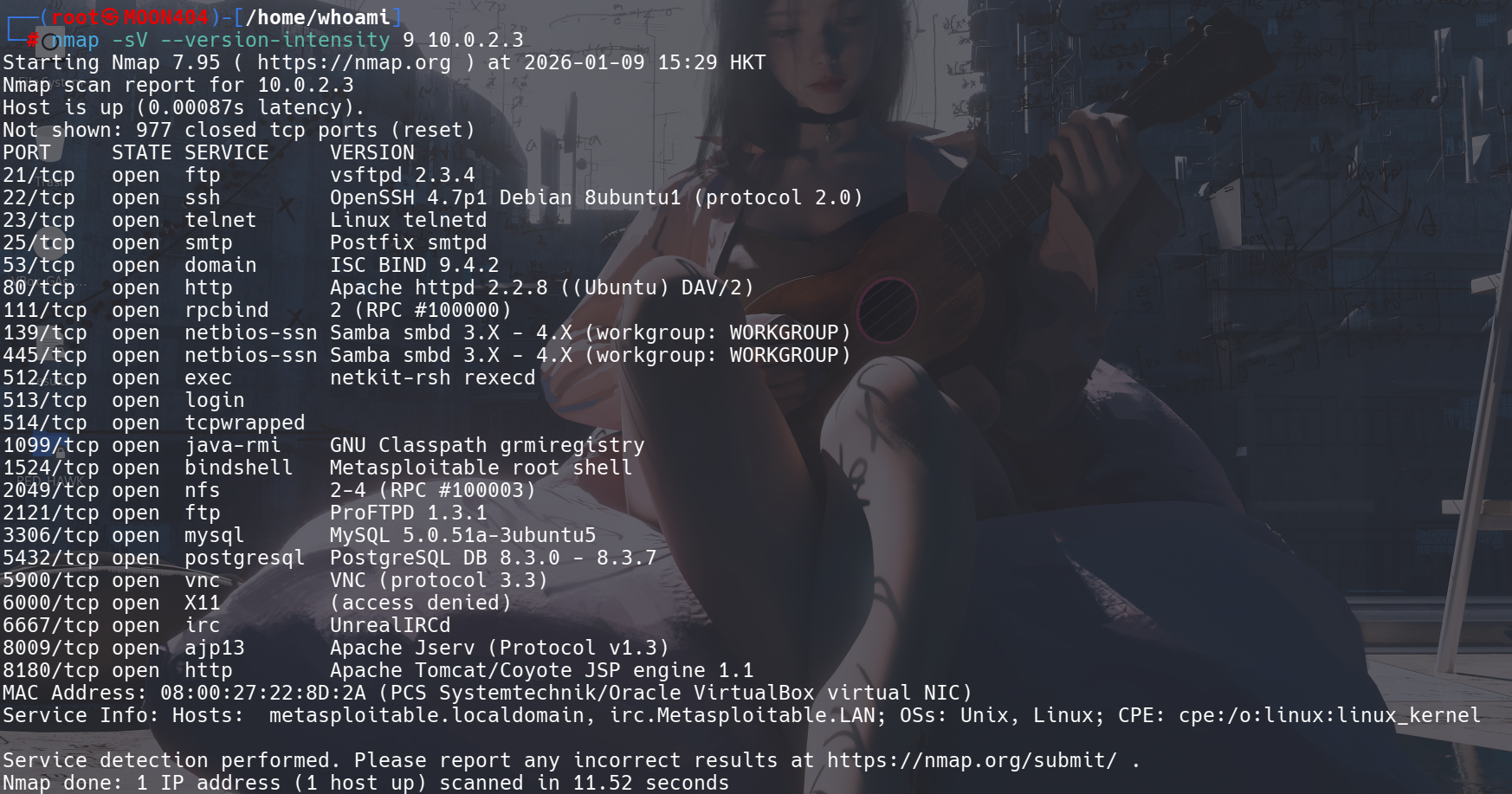 sudo nmap -sV --version-intensity 9 [IP地址]