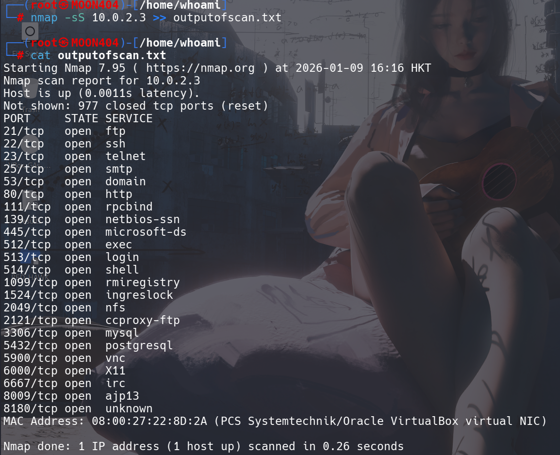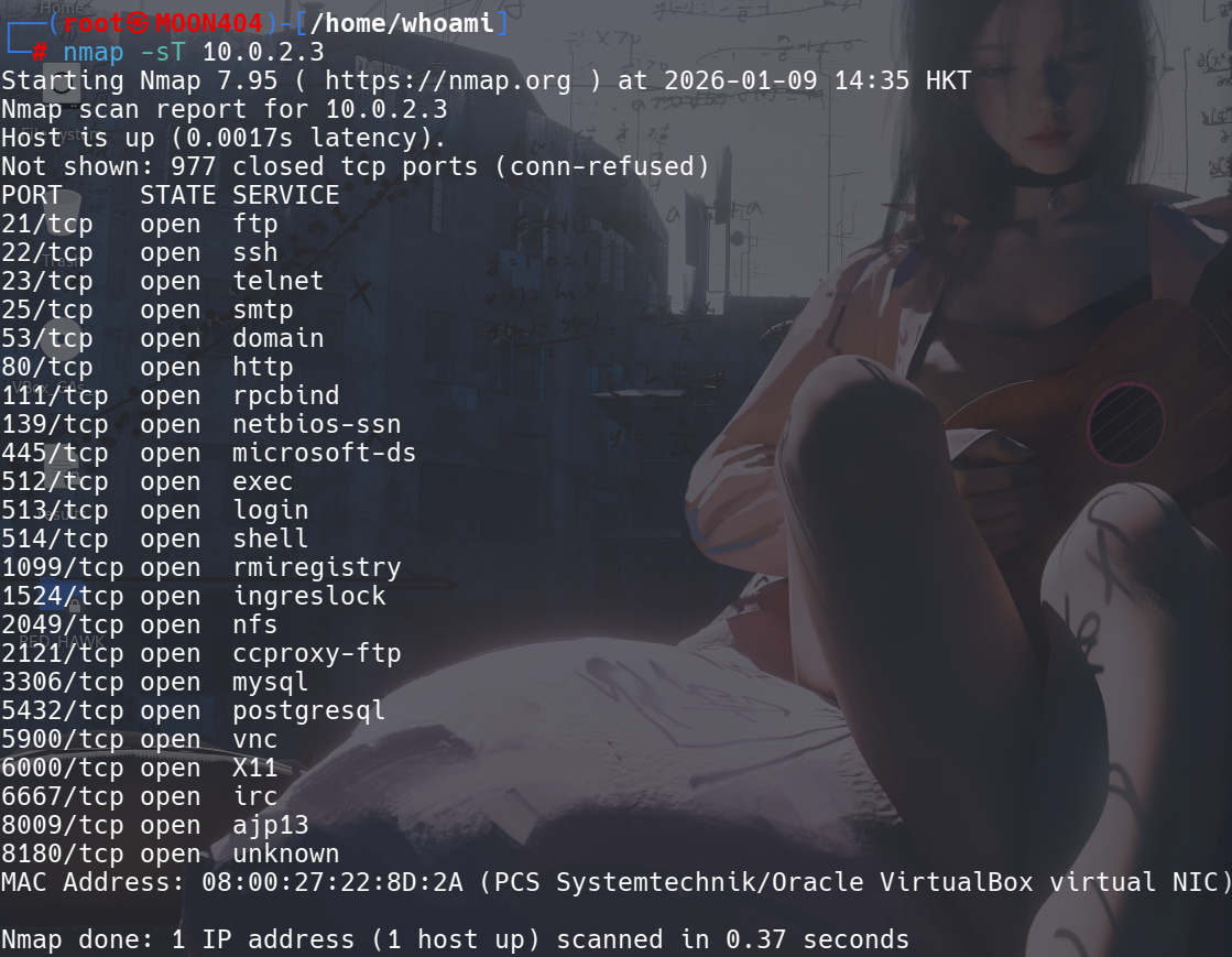 使用操作系统完整的 connect() 系统调用建立连接。不需要 root 权限,但速度慢,且会在目标日志中留下记录
