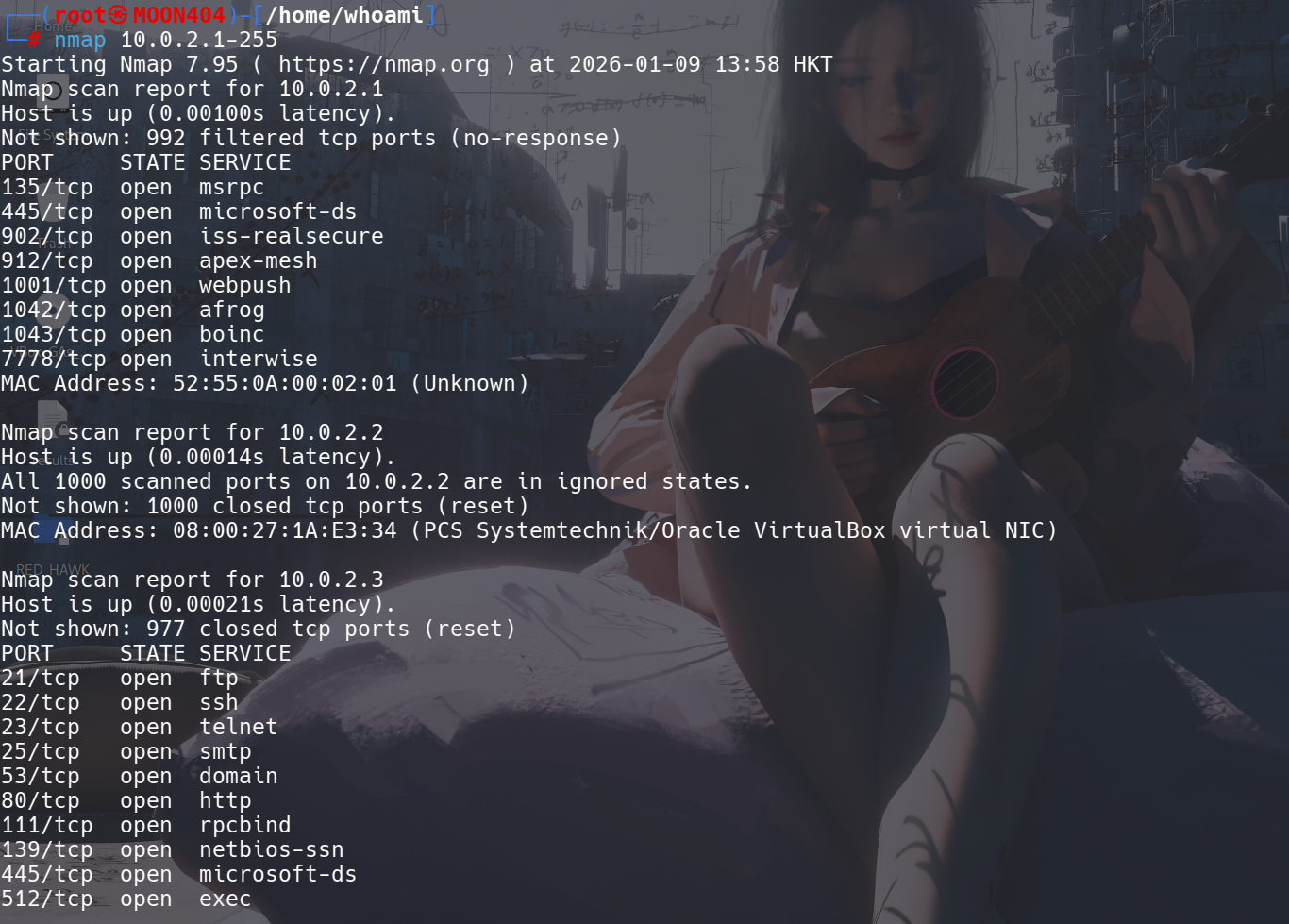 扫描相当于更深层次的信息收集,通过发送数据包获得的响应来获取更详细的信息