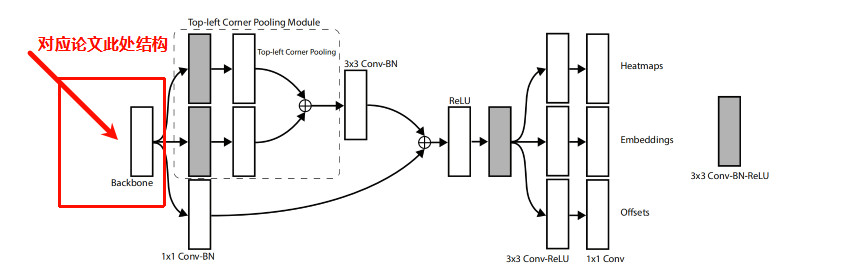 后续backbone部分提取的特征将会被用于后续的角点池化与热力图图预测。