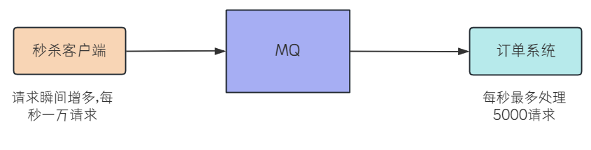 但是如果是在秒杀的时间点,请求量瞬间增多,如果这些请求全部通过MQ发送到订单系统,无疑会把订单系统压垮。