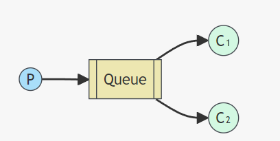 - 消息只能被消费一次。也称为点对点模式。