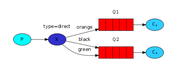 - Dirext: 顶向。将消息交给符合指定routing key的队列(routing模式)。