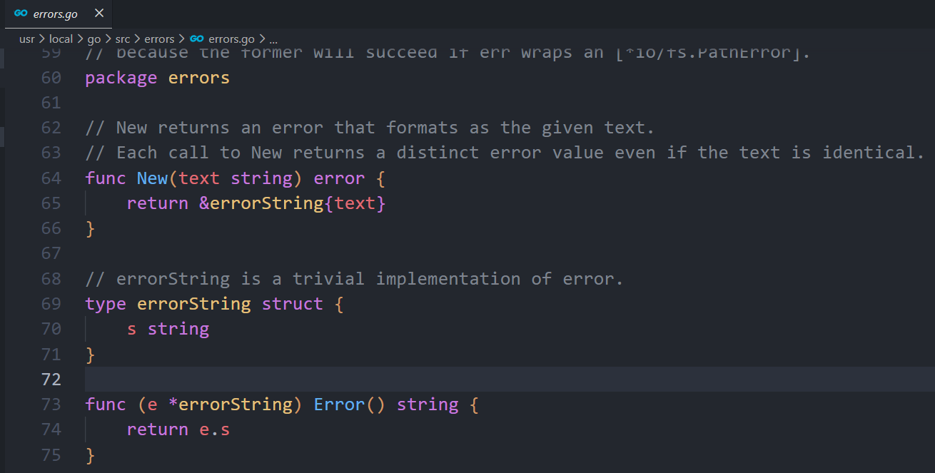 errors.New() 函数实现: