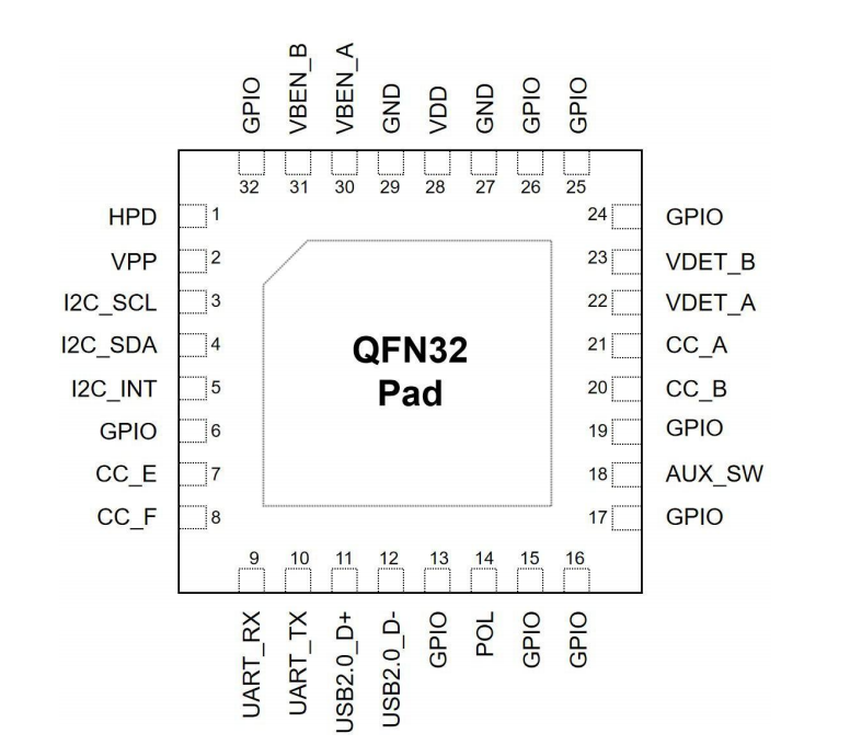 LDR6020芯片采用QFN-32 4*4封装,集成3组6路DRP USB-C及PD通信协议处理模块,支持USB2.0数据传输。这种高集成度设计使得外围电路更加简洁,减少了元器件数量,降低了成本。例如,在Type-C多功能转接器设计中,LDR6020芯片的集成度显著提升了电路设计的简洁性,使得产品更加轻薄便携。
