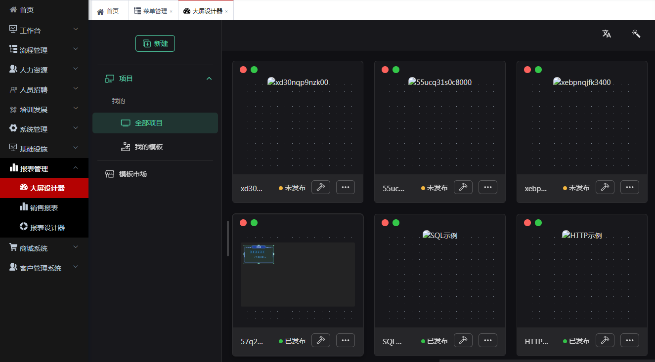 3、改造yudao-vue-pro中的【报表管理->大屏设计】中的页面