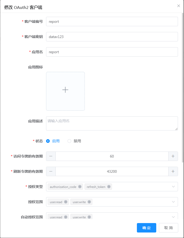 1、在【三方授权->应用管理】中注册数据大屏应用report